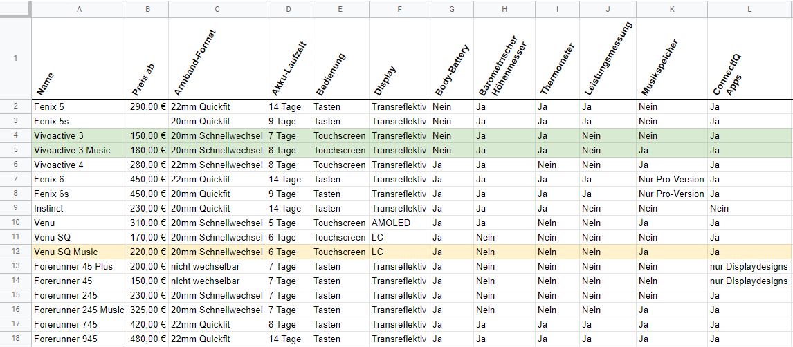 Ich habe hierbei ausschließlich die Unterschiede herausgestellt. Man erkennt jedoch, dass Preis-Leistungstechnisch die zwar betagte aber noch immer erhältliche und sehr gute Vivoactive 3 (Music) ein sehr gutes Preis-Leistungsverhältnis besitzt.