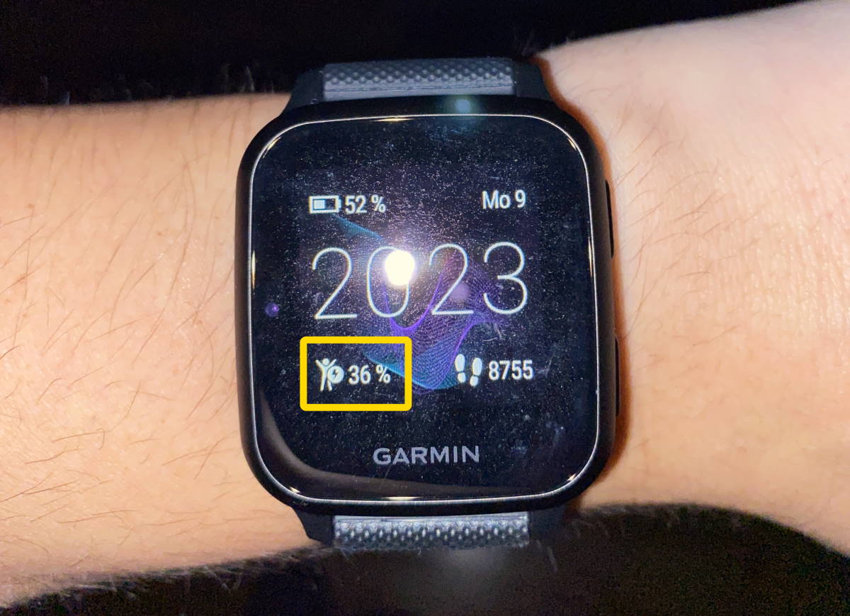 Ein besonderes neues Feature (ich kannte es zumindest bisher nicht) ist die Body Battery Funktion. Hierzu errechnet die Uhr aus mehreren Faktoren wie der Herzfrequenz, der Schlafqualität, dem Stress und den Aktivitäten die Restenergie des Körpers. Beim Schlafen oder in Ruhephasen steigt der Wert von Body Battery wieder an. Wie realisitisch das ist, kann ich nicht einschätzen, jedoch kann ich schon beobachten, dass an besonders anstrengenden Tagen der Wert bei nur noch 10% ist.
