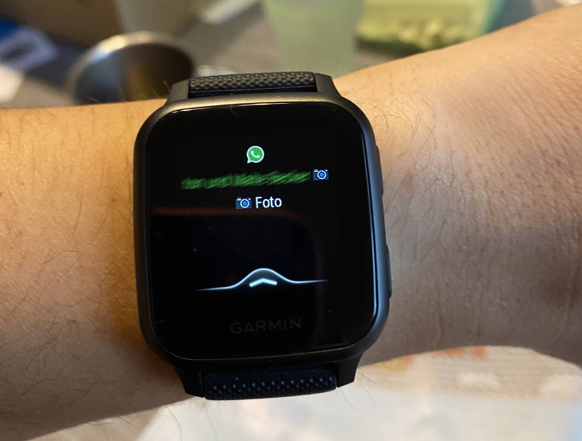 Das Display ist ziemlich gut. Der Kontrast und die Farben sind schon sehr gut, insbesondere im Vergleich mit anderen Modellen von Garmin. Benachrichtigungen werden deutlich besser – kontrastreicher – dargestellt. Sie werden auch nicht so früh abgeschnitten wie auf Modellen wie Fenix 5S oder Vivoactive. Wer darauf Wert legt, der sollte eher zur Venu (SQ) greifen.