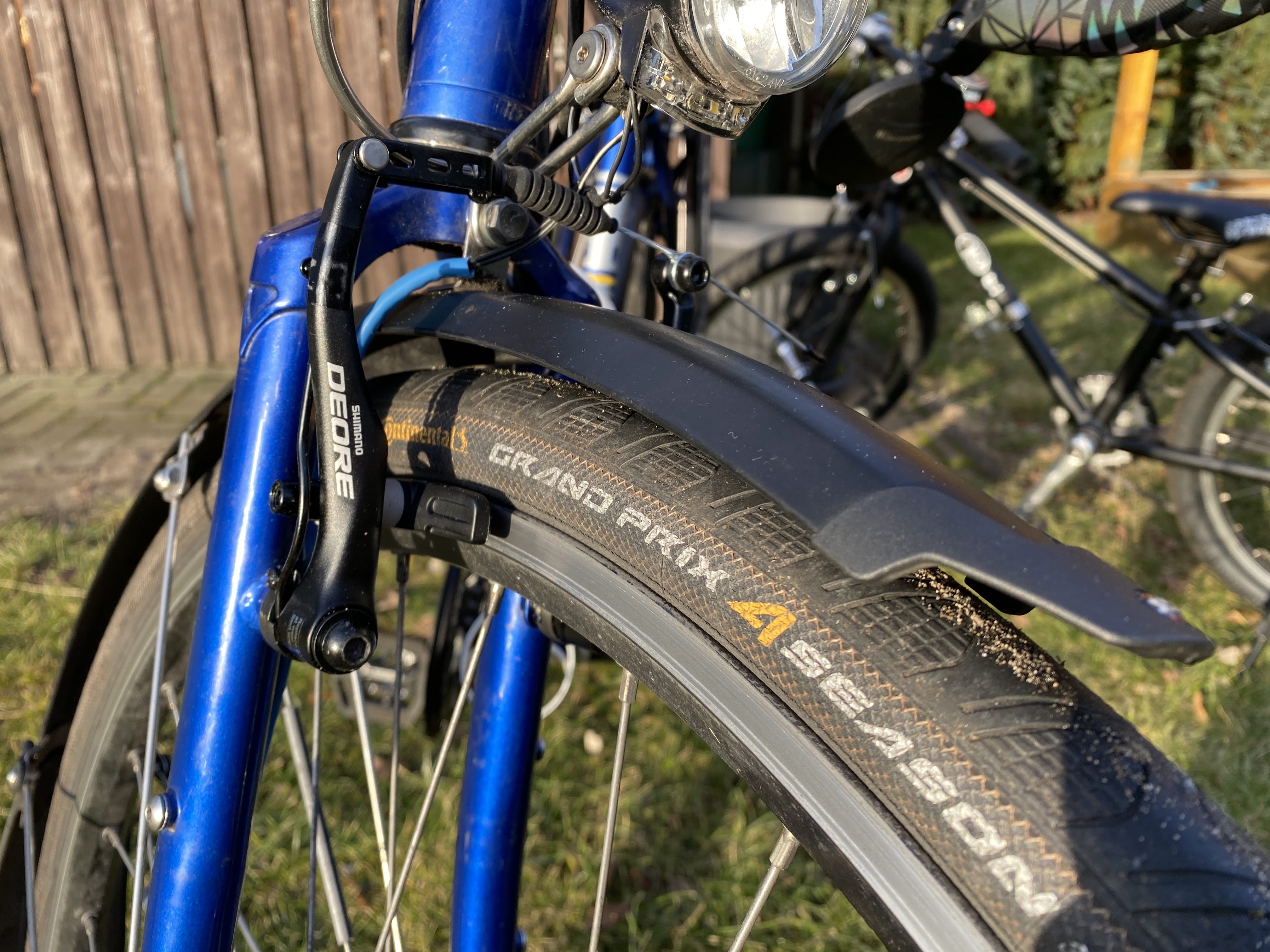 Weiterhin habe ich wieder meine alten SKS Bluemels am Rahmen fest montiert, weil diese nun in Kombination mit den V-Brakes wieder passen.