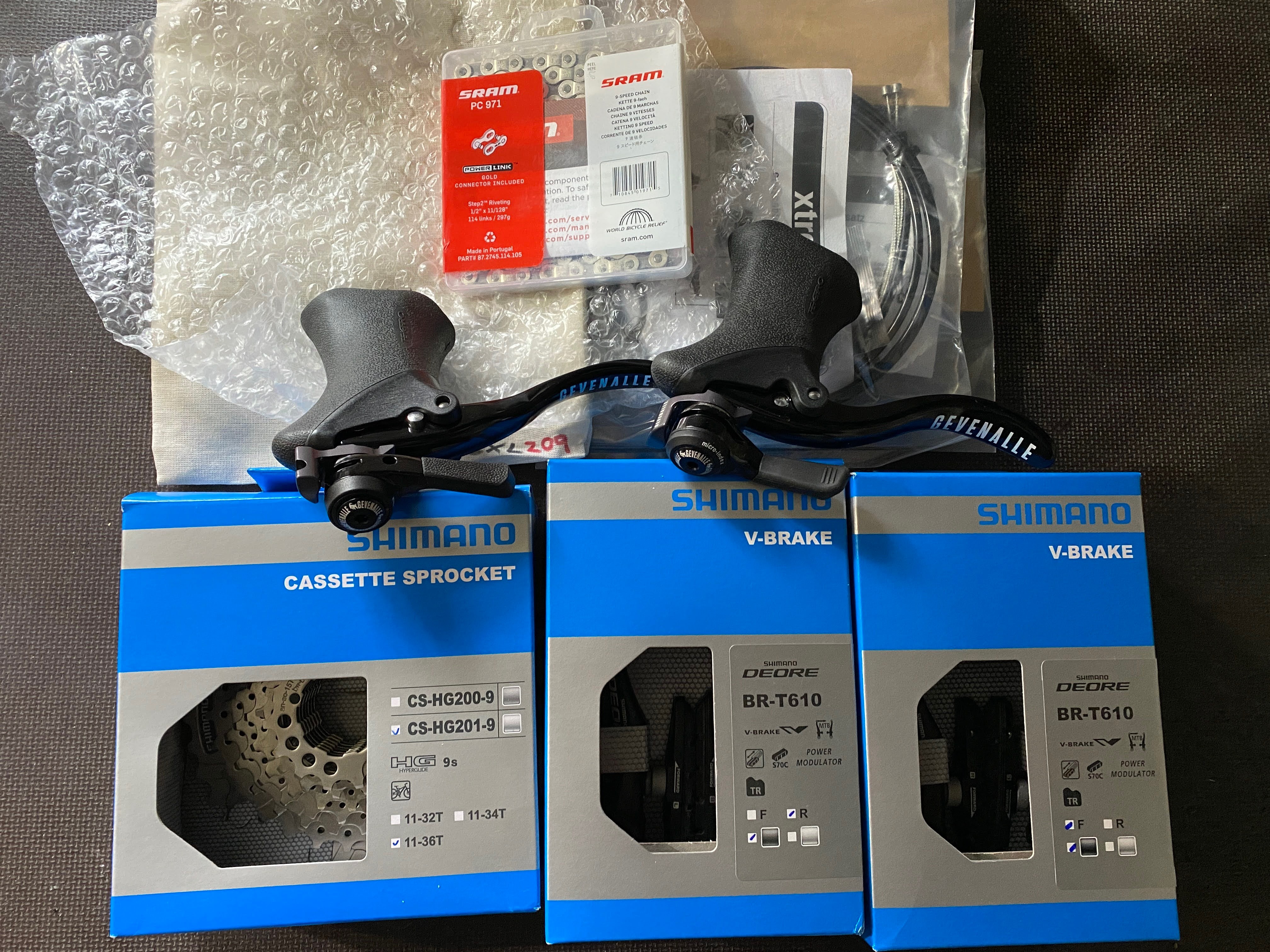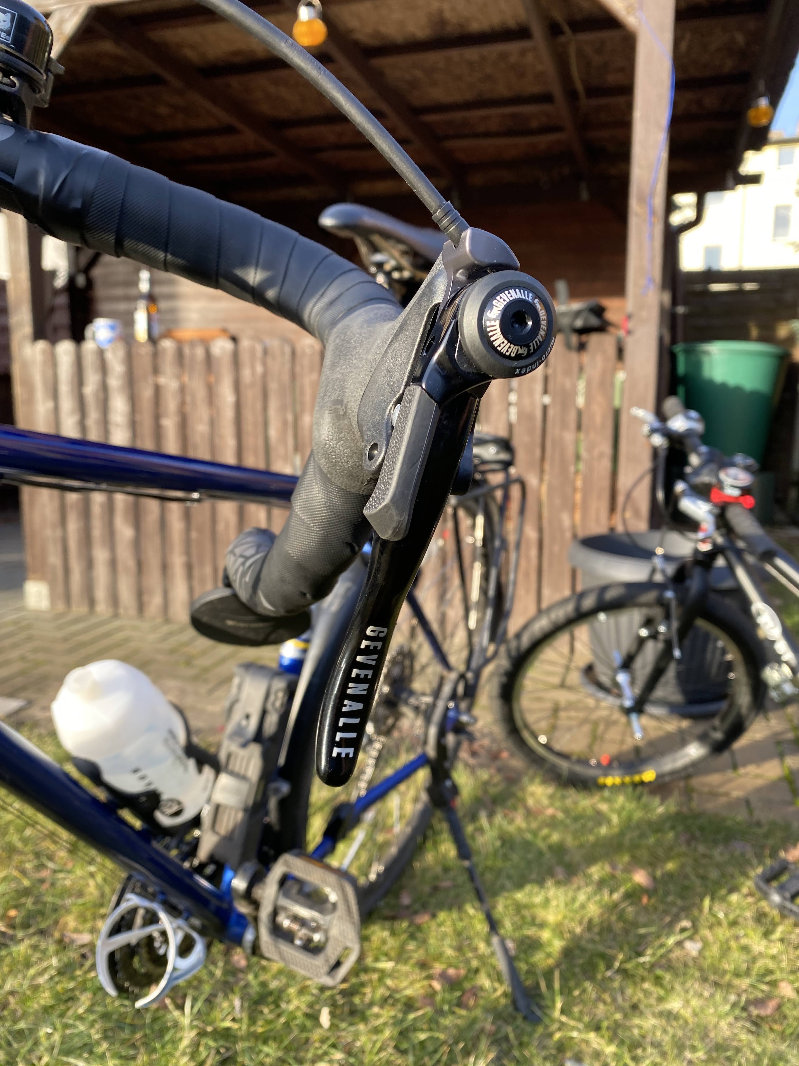 Nach einem Defekt des 9-fach Sora STIs habe ich die Gevenalle CX Shifter 3×9 für MTB-Bremsen bestellt. Aufgrund der besseren Kompatibilität zu V-Brakes habe ich mich gegen einen direkten Ersatz der Sora STIs entschieden.