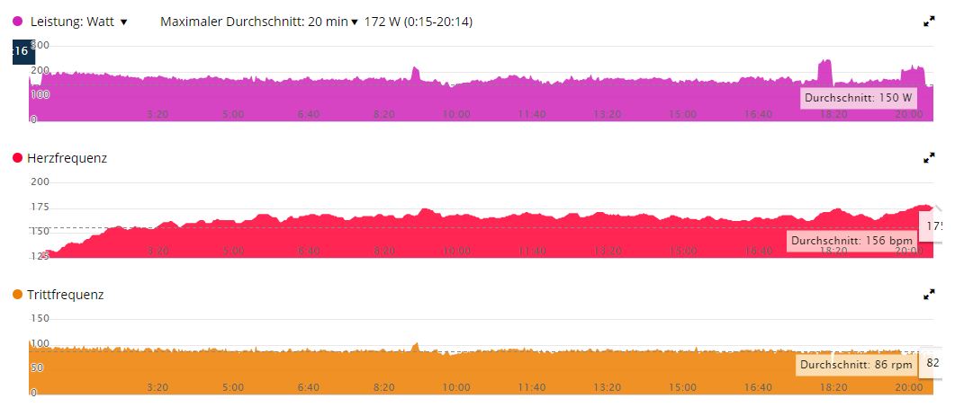 Allerdings wurden die unterschiedlichen Fahrten nicht direkt hintereinander durchgeführt sondern innerhalb weniger Wochen. Das verwässert die Korrektheit natürlich etwas, das ist mir bewusst, weil sich auch mein eigener Fitnesszustand verändert haben könnte.