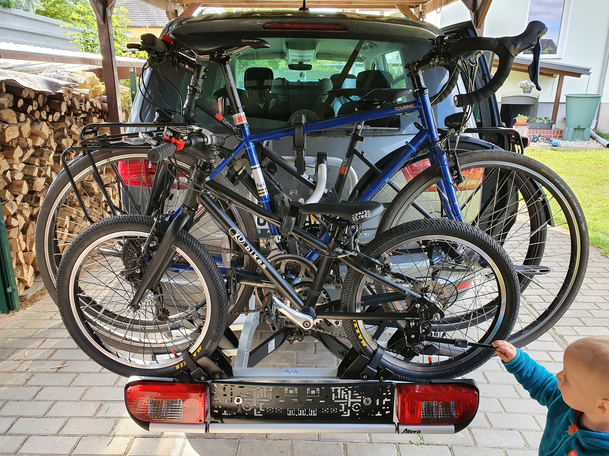 Daneben nehmen wir unsere Fahrräder auch mit in den Urlaub. Dazu wird das Fahrrad in unser Auto entweder in den Kofferraum gelegt oder auf den Heckträger gestellt.