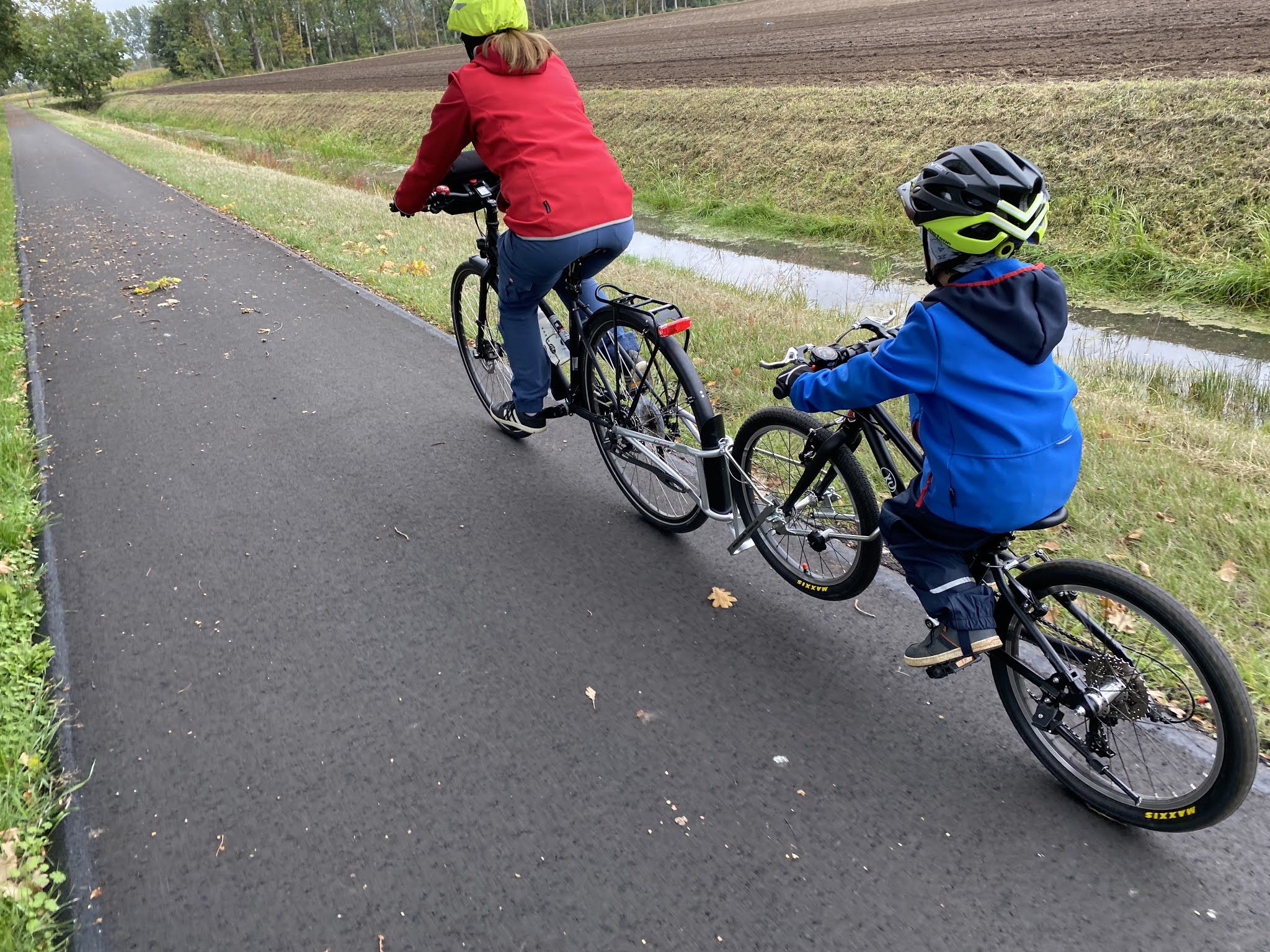 Das zweite sind Ausflugsfahrten, also Tagestouren auf dem Fahrrad, auf denen wir auch den FollowMe mitführen. Hier fahren wir pro Tour bzw. Tag so zwischen 40 und 50 Kilometer. Wobei unser Sohn davon meist 10 bis 15 Kilometer alleine fährt. Den Rest der Strecke wechselt er zwischen Tandemmodus am FollowMe und dem Anhänger (zum schlafen, ausruhen).