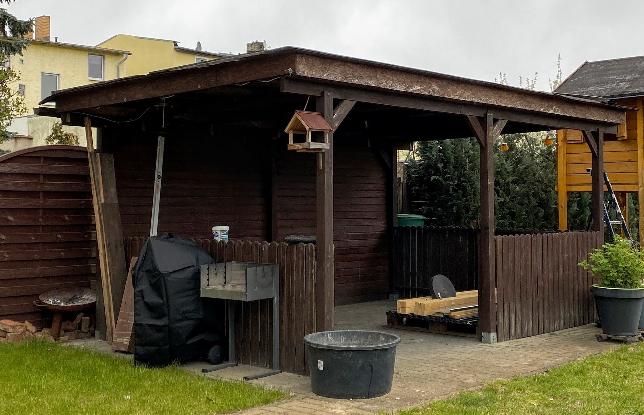 In jedem Fall ist die Überdachung bereits seit letztem Jahr undicht und hatte erste Schimmelspuren. Ich habe daher für dieses Frühjahr eine Sanierung des Daches geplant. Die Corona-Maßnahmen habe ich genutzt um viel zu recherchieren. Allerdings wurde das Projekt dadurch auch verzögert, einfach weil die Baumärkte einige Wochen geschlossen waren.