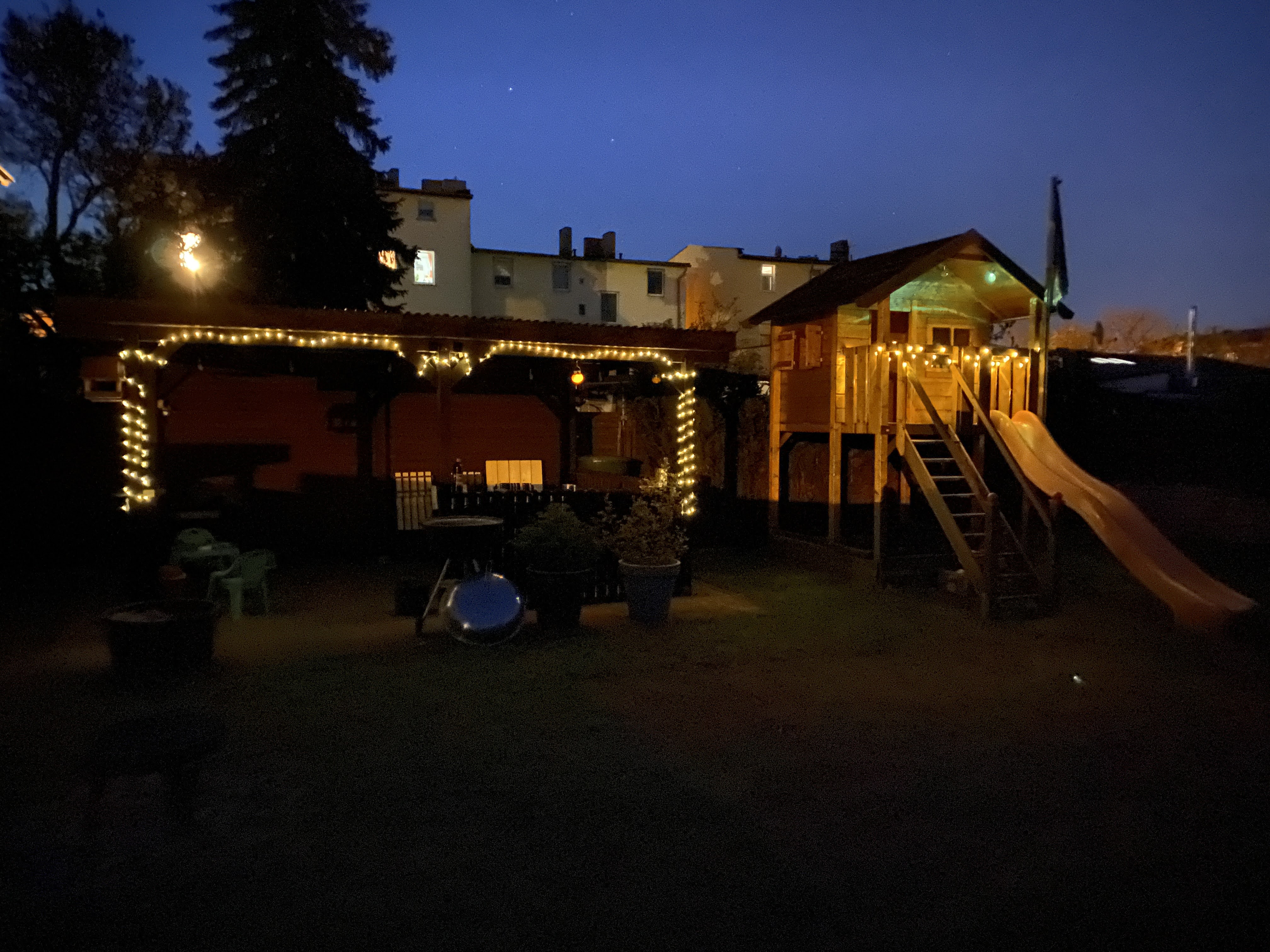Ja auch darüber haben wir kurz nachgedacht. Es gibt hier wirklich schöne Lösungen. Allerdings war uns insbesondere im Hochsommer wichtiger, dass wir auch einen Platz haben der Schattig ist. In die Sonne können wir uns auf den Rasen setzen oder legen.